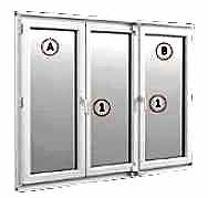 B kanadı üzerindeki kol 1 No'lu konumdan 2 No'lu konuma getirilir. B kanadı öne çekilerek açılır. A kanadı üzerindeki pencere kolu 1 No'lu konumdan 2 No'lu konuma getirilir ve kapı açılır.