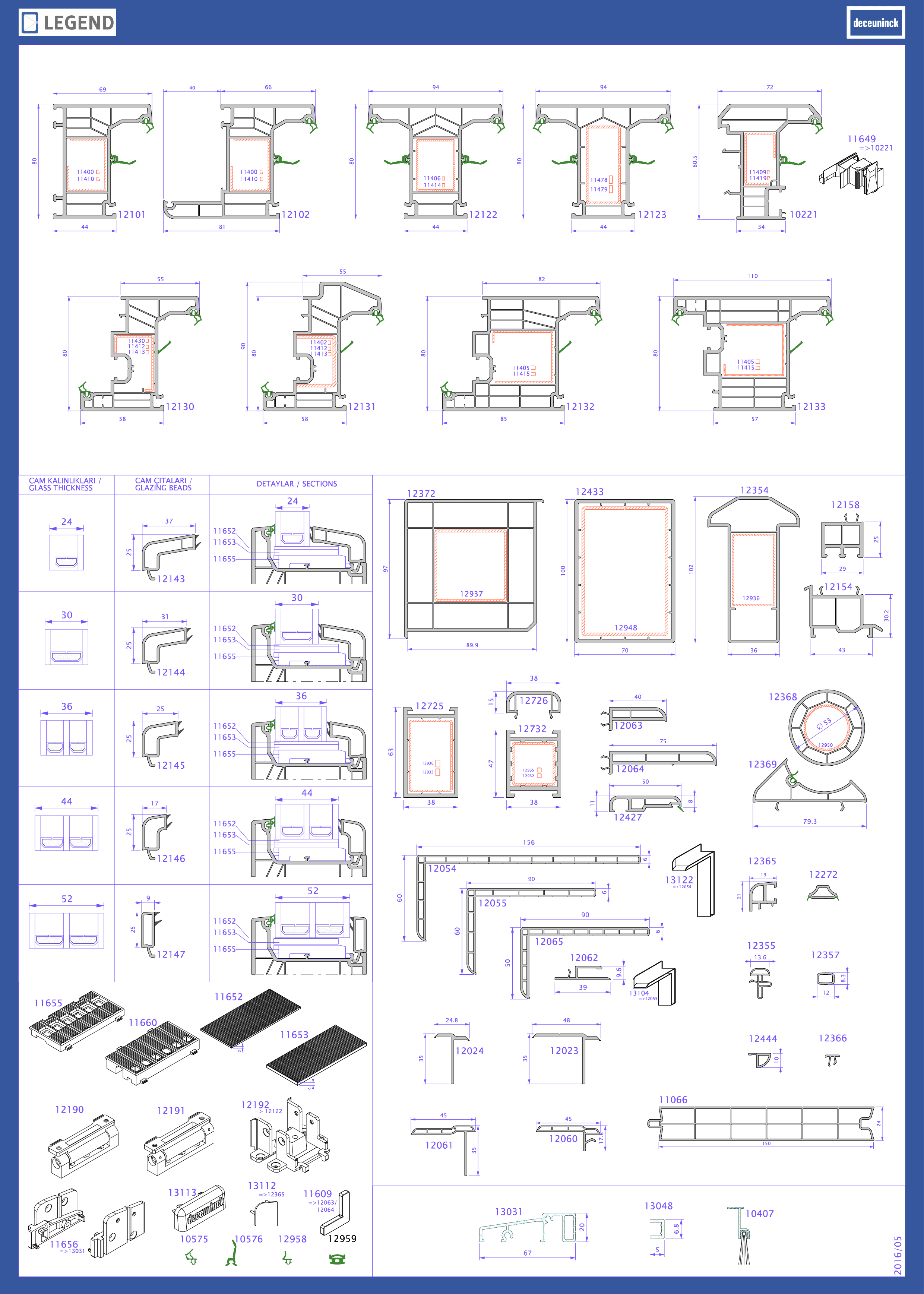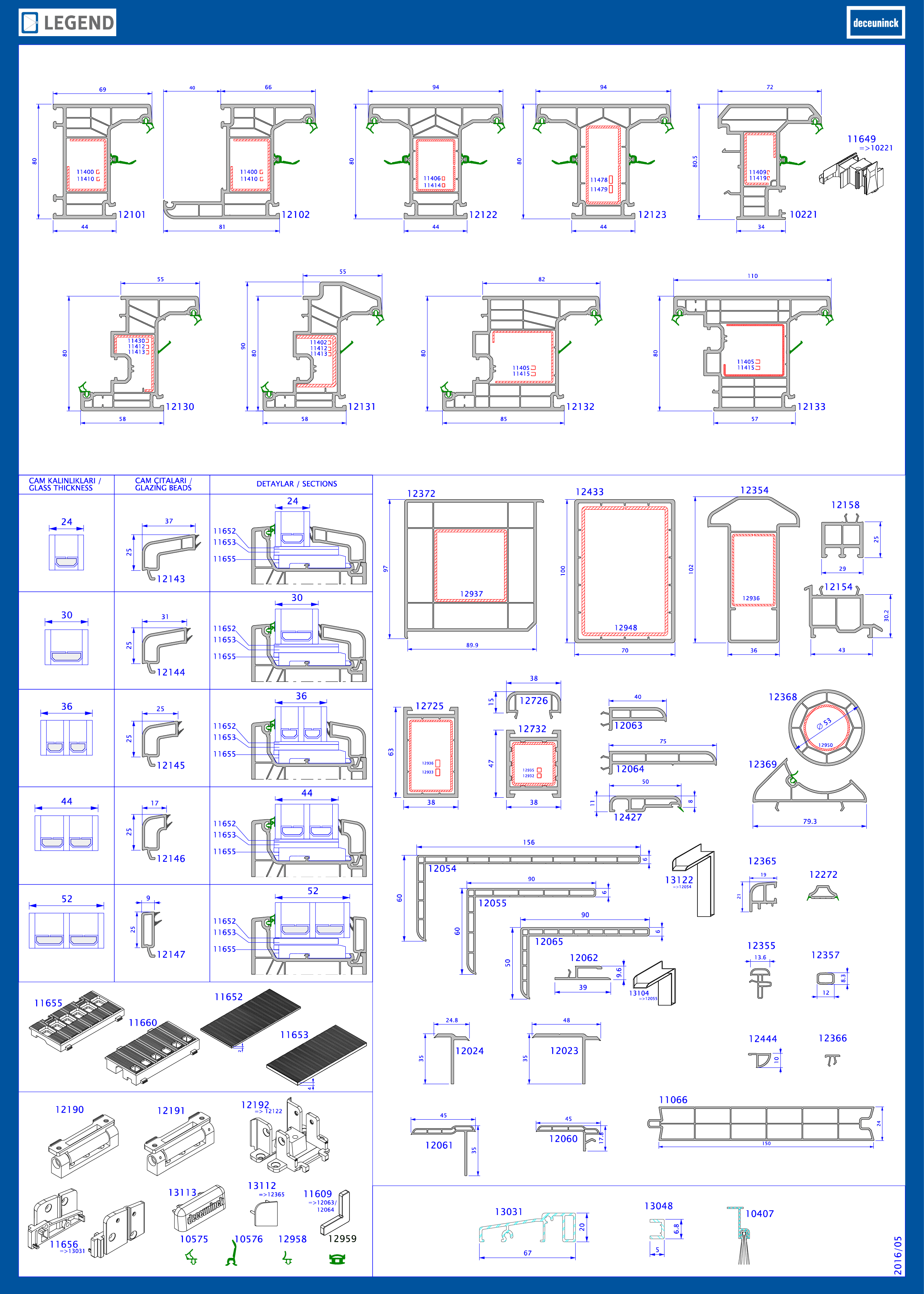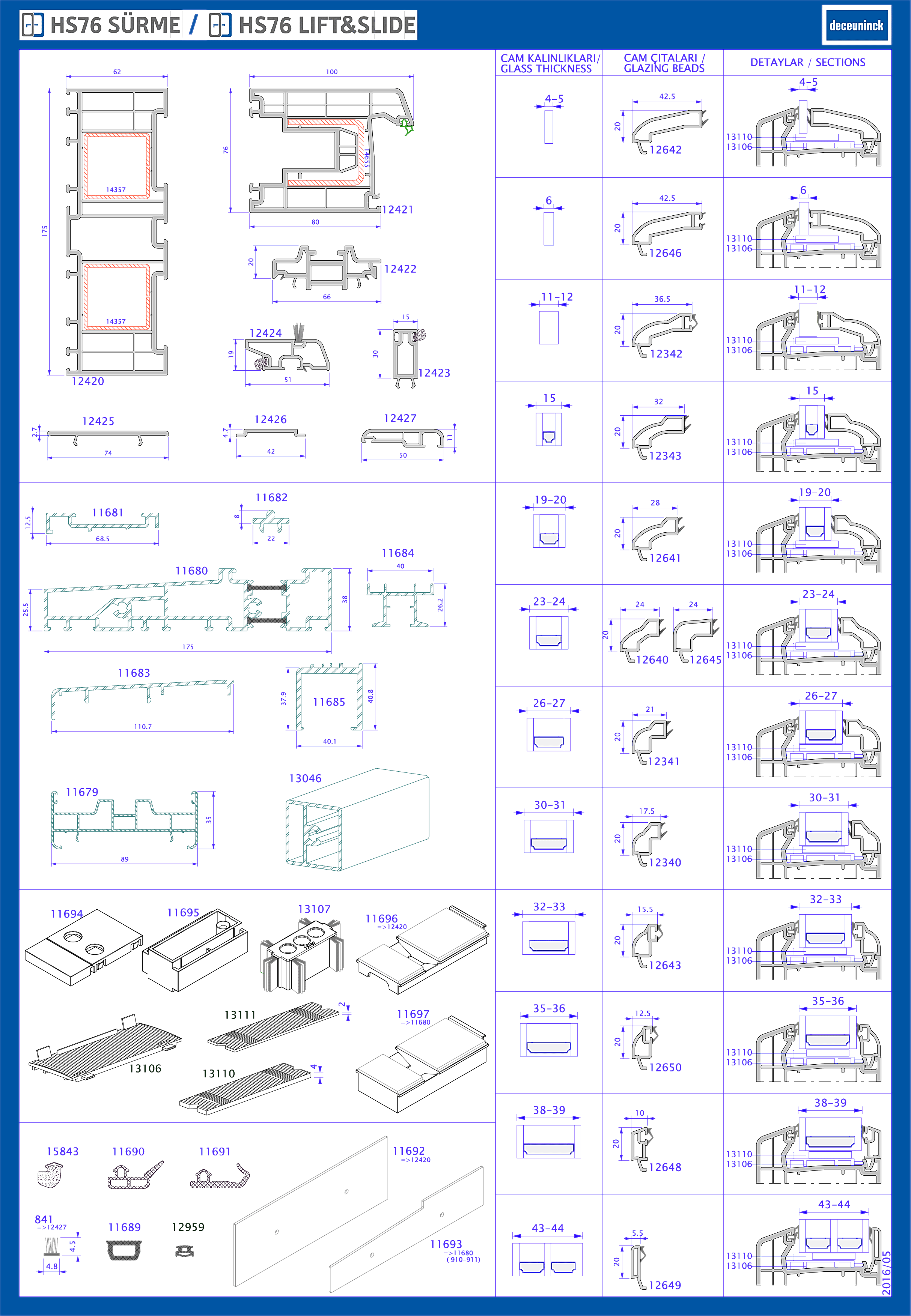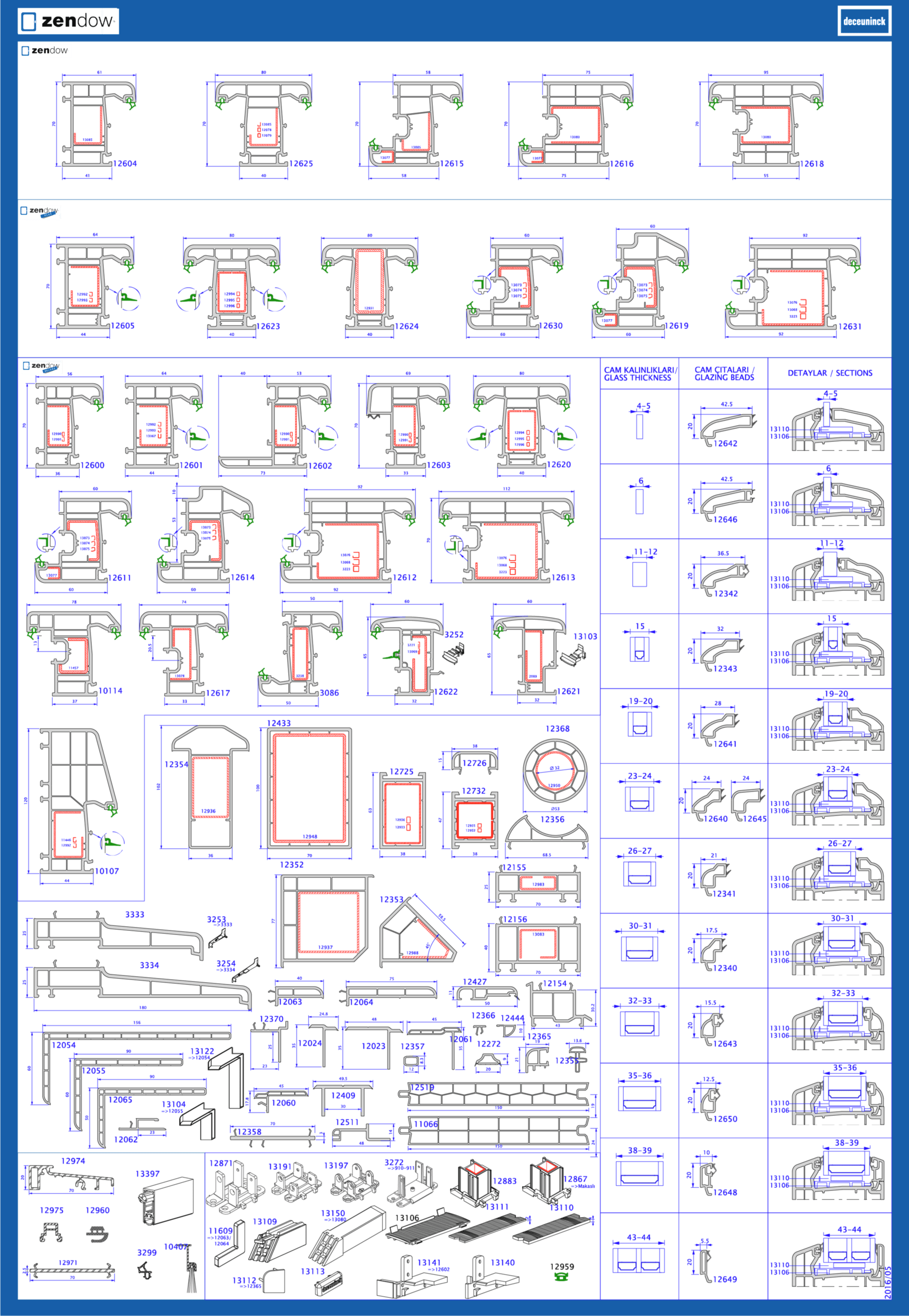 Açılım Seçenekleri : Sürme tek ray, çift ray, üç ray kasa profilleri ve sineklikli kasa, pervazlı kasa uygulamalarıUf : 2.0 W / m².K